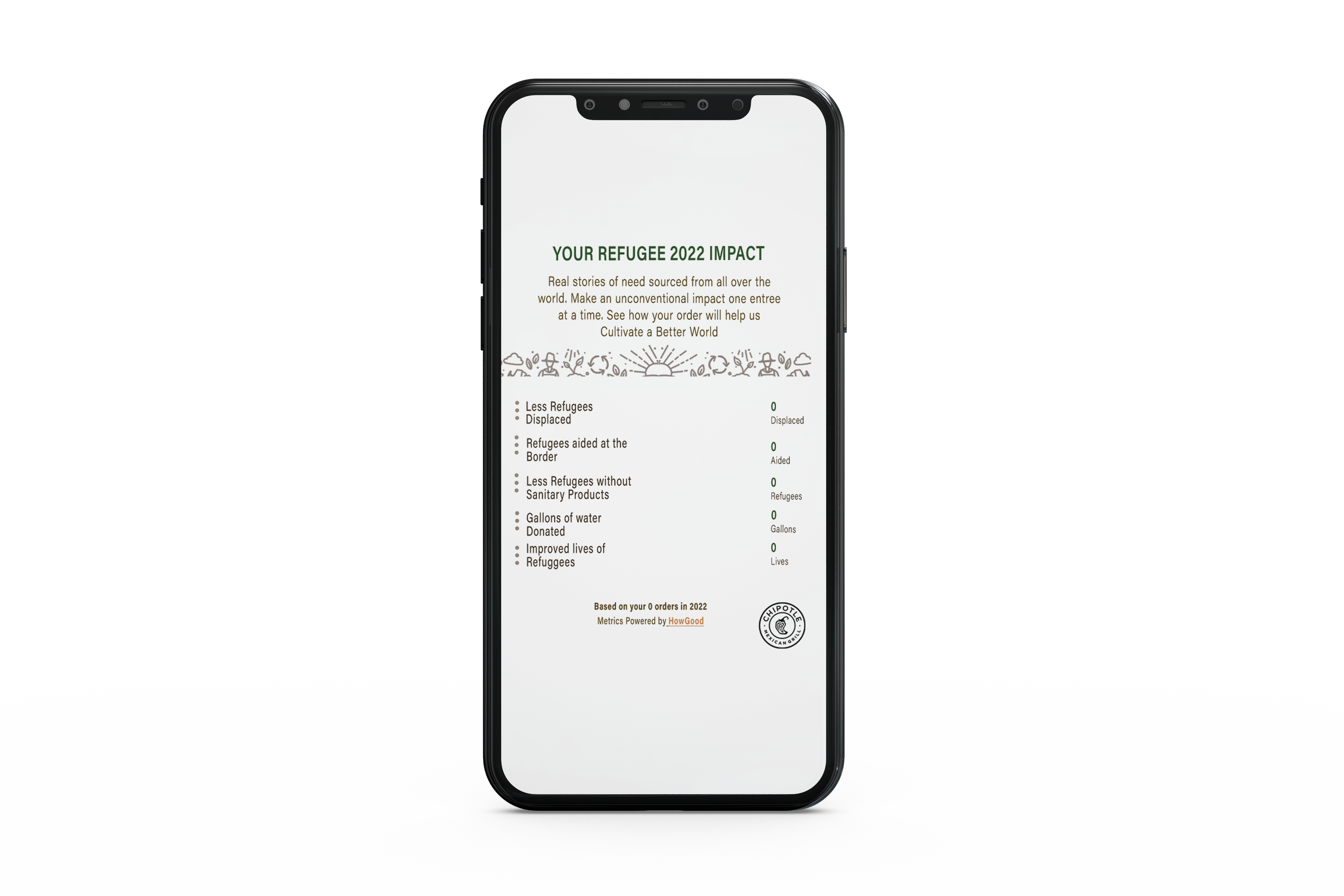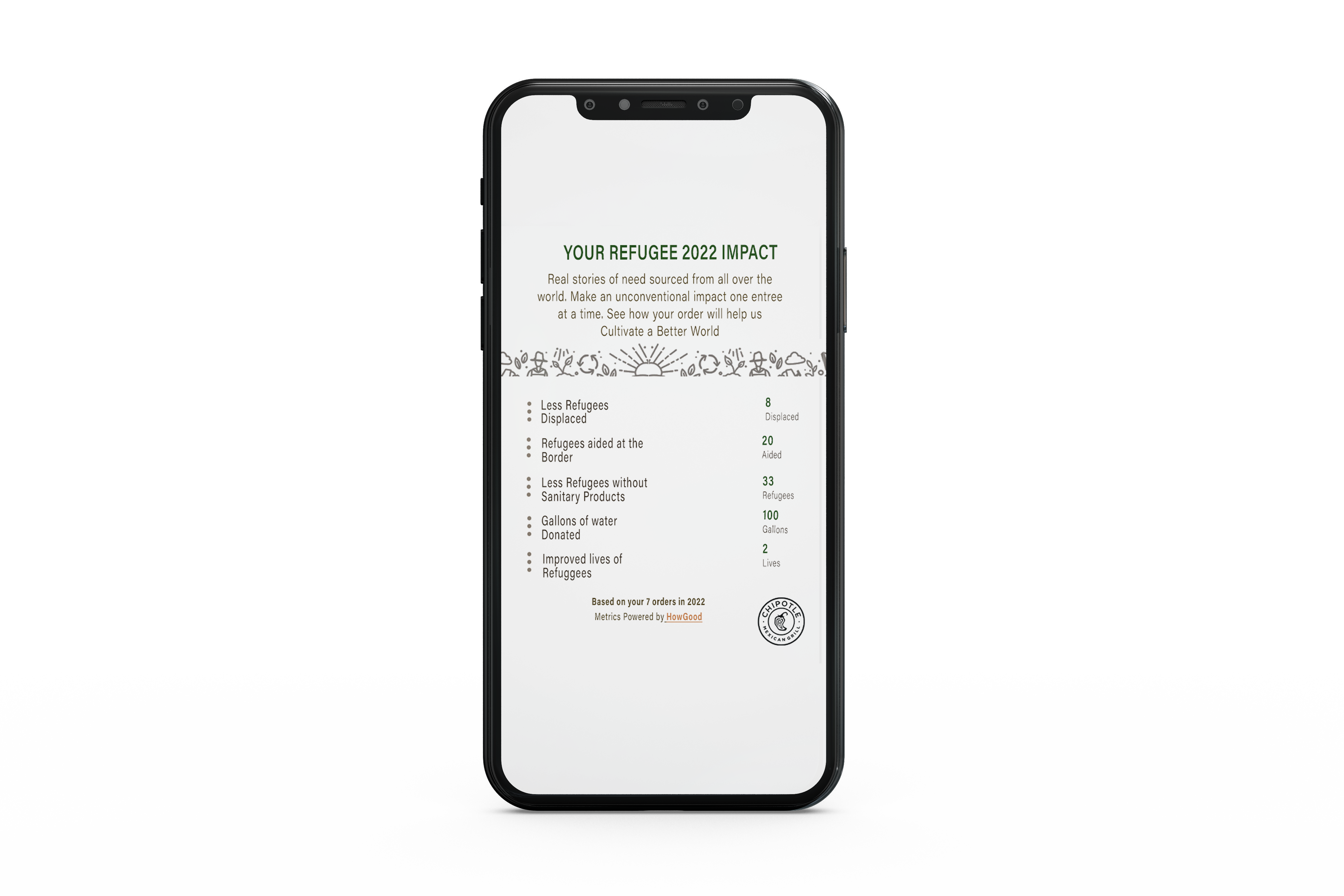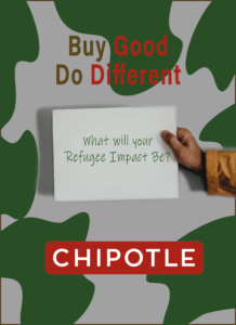 Chipotle believes in Buying Good and Doing Different and with every purchase on the Chipotle app, your order proceeds will help a refugee who needs resources.